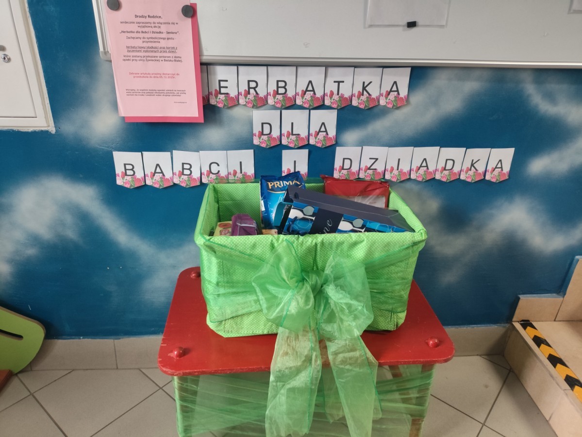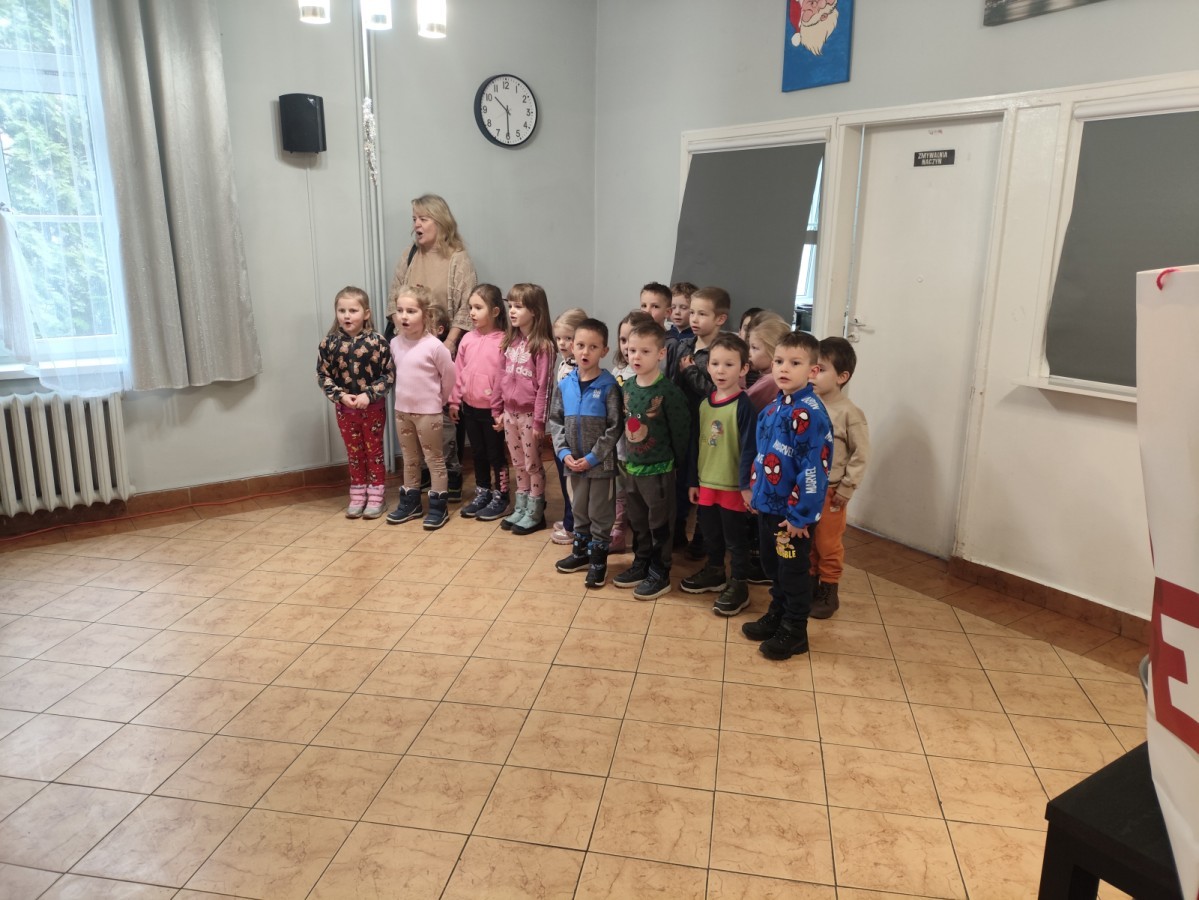 Tam zaśpiewały podopiecznym kolędy i wręczyły paczki świąteczne, które zgromadziliśmy dzięki rodzicom naszych przedszkolaków w ramach akcji Herbatka dla Babci i Dziadka.